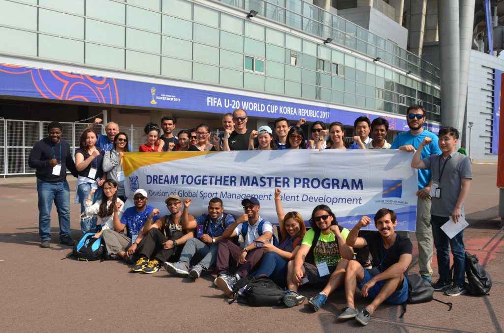 As an extracurricular activity, Dream Together Master 4th batch students visited the Suwon World Cup Stadium to watch a U-20 soccer match (Uruguay vs Saudi Arabia). This was a great chance to apply what students have learned in the class to sport field and to experience a sport mega-event, facility administration, and sports marketing strategies.