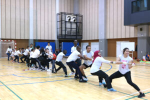 Teams white and black took to one of the indoor gymnasiums at the Sports Education and Research Building in Seoul National University to compete in six sport events including; mini-games, futsal, tug-of-war, dodge ball, charades, and a Korean game called “moyeora chingudeul” or “let’s get together friends.”